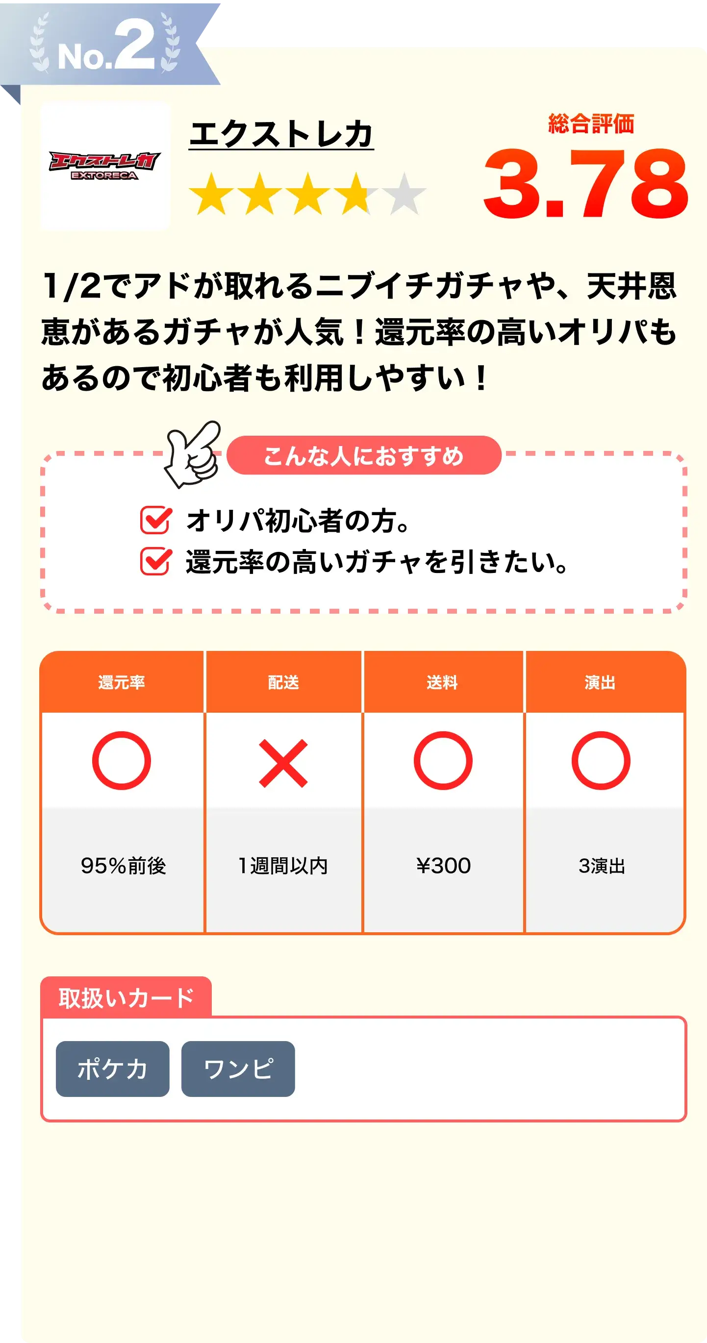 ・低ポイントから引けるガチャがある